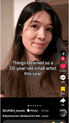 π Content Summary:A carousel starting with "Things I learned as a 30-year-old small artist this year" featuring short, honest lessons over personal photos from the past year. Being specific about age and status ("30-year-old small artist" vs just "musician") creates an instant connection.