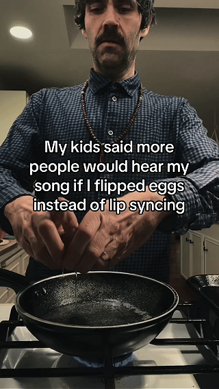 The hook this musician used: "My kids said more people would hear my song if I flipped eggs instead of lip syncing" - and guess what? It worked (1M views.)